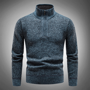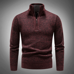 Combining comfort with style, the Arius Breathable Mock Neck Sweater in blue, grey, or red is a luxe take on a wardrobe essential.