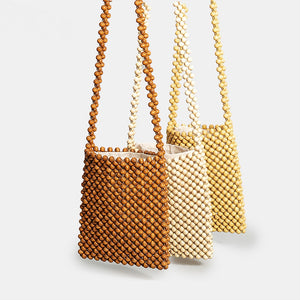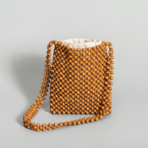 Crafted with attention to detail, this exceptional purse is adorned with an array of wooden beads, forming a mesmerizing design.