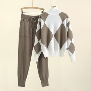 Crafted from sumptuous viscose for a stretch handle, the ensemble consists of a knitted turtleneck and matching pants.