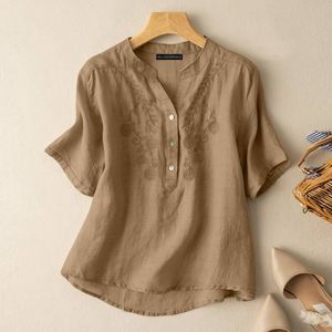 Created from a luxurious cotton blend, the blouse showcases a button-down design enhanced with an asymmetrical hem.