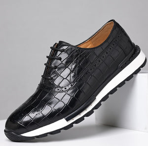 The crocodile-embossed pattern exudes uniqueness, adding a subtle yet distinctive touch to the overall design.
