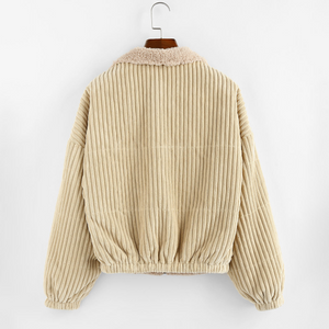 Cut to a cropped fit, it's trimmed with velvety corduroy and lined with plush fleece to showcase the styling potential of a reversible design.