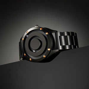 Nestled within this remarkable watch resides a three-dimensional dial and two magnetic orbs, which elegantly display time.