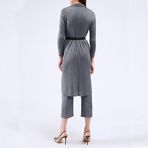 Adorned with crisp pleats, this dreamy flock features elegantly draped sleeves and a button-front closure.