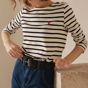 Imagined in a relaxed silhouette, it features a delicate heart motif at the chest intricate for a softer and more relaxed palette.