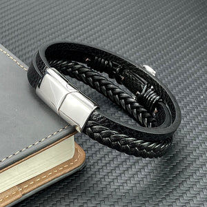 Imagined in premium leather, this remarkable bracelet showcases a fine stainless steel anchor charm paired with an elegant magnetic clasp.