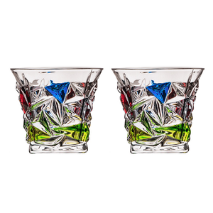 Adorned with intricate color reflections, it effortlessly captures the essence of artistic beauty in glassware.