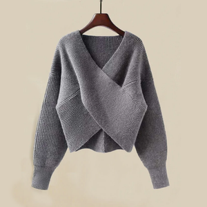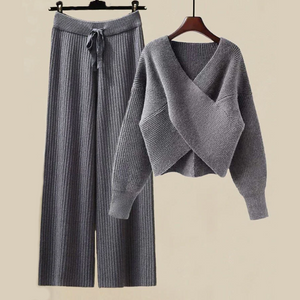 Knitted in a premium cotton blend for optimal softness, the set includes a knitted sweater and the matching wide-leg pants.