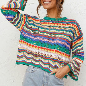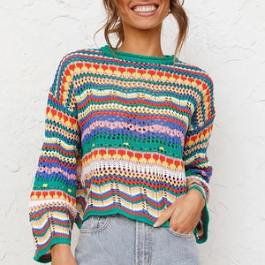 The Emilia-Calou Knitted Boho Sweater takes a versatile essential and adds subtle design interest with vibrant bohemian motifs.