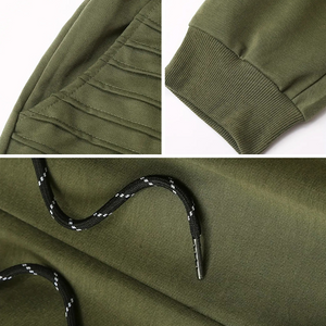 The pair features a practical drawstring closure and a versatile elastic waistband, allowing for a customized and secure fit.
