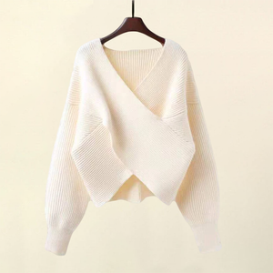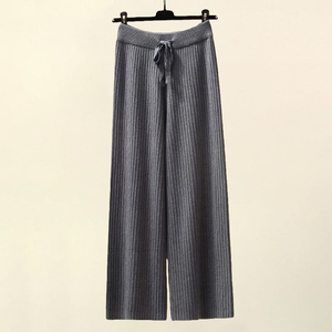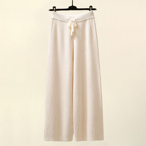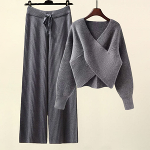Crafted from a sumptuous cotton blend, the ensemble consists of a knitted sweater and matching wide-leg pants.