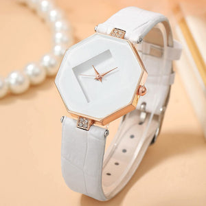 The meticulously crafted watch boasts a minimalistic design, showcasing a luxurious rhombic case adorned with shimmering jewels.