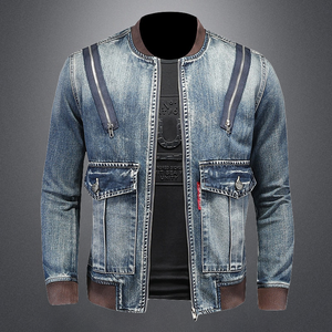 Adorned with knitting at the trims, large twin pockets, and distressed zipper detail around the shoulders.