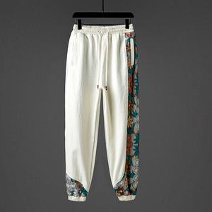 Panelled with an abstract floral print along the outer leg, ankle cuffs and back patch pocket.