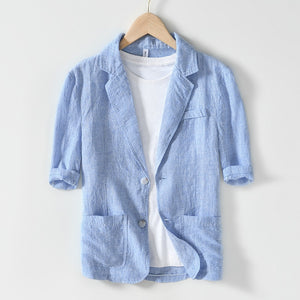 Exceptional tailoring meets impeccable comfort in this contemporary linen staple. Meticulously crafted from pure, rumpled linen, this slim-fit blazer offers a comfortable and easygoing sensation.