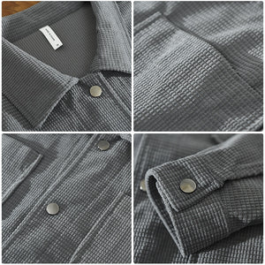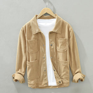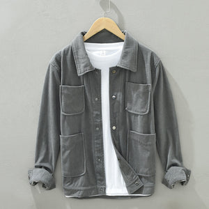 Each piece is finished with multiple patch pockets and roll-up sleeves, offering a modern twist on styling.