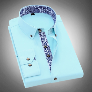 Features a crisp turn-down collar, classic button sleeves, and a neat button placket for a formal approach.