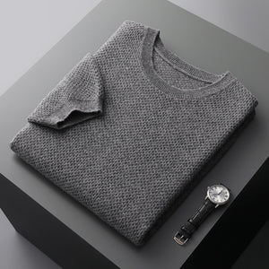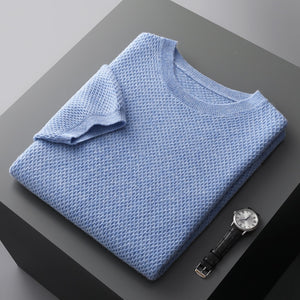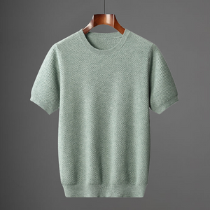 Crafted from luxurious merino wool, the modern essential sports a classic crew neck, ribbed trims, and short sleeves.