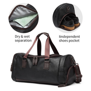 Exquisitely crafted from vegan PU leather, the weekender guarantees the safety of all your essentials within its spacious interior.