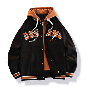 The sporty fit has been updated with striped rib trims, chenille letter patches, and tonal button snaps.