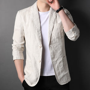 Exquisite craftsmanship meets unmatched comfort in this timeless linen blazer.