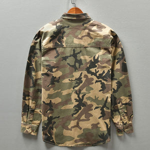 The camo print adds elements of modernity and rugged charm, encapsulating a sense of adventure and urban sensibility.
