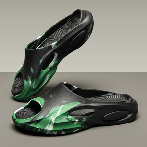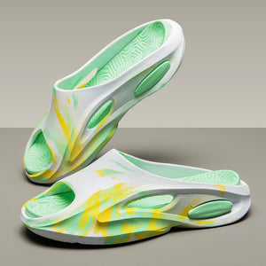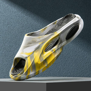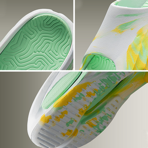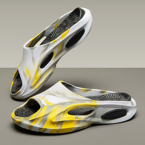 With a carefree slip-on silhouette, they are made from ultra-lightweight EVA fabric and adorned with a vibrant marble print throughout.