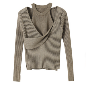 Imagined in a sleek cold-shoulder design, this knitted top seamlessly accentuates curves to create an exquisite feminine aesthetic.