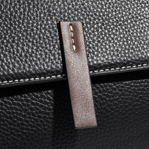 Crafted from genuine leather with a classy pebbled finish, this gorgeous staple showcases a magnetic button front which opens up to a generous interior.