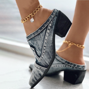 Crafted from acid-wash denim, the mules boast a carefree slip-on profile and a worn-in look that exudes effortless style.