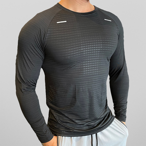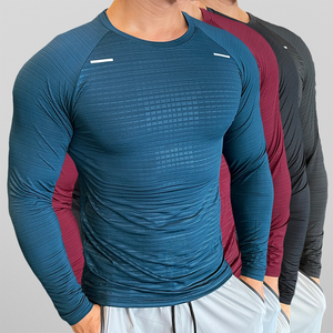Cut to a sculpted muscle fit, it sports a longsleeve silhouette that pairs seamlessly with your entire activewear portfolio.