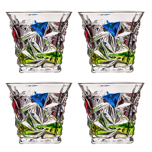 Adorned with intricate color reflections, it effortlessly captures the essence of artistic beauty in glassware.