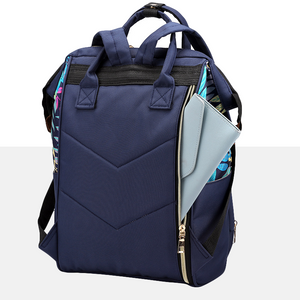 The fashionable, all-purpose backpack is fitted with a sturdy top handle and padded back straps for varied carrying options.