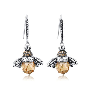 Exquisite 925 Sterling Silver Crystal Bee Earrings