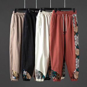 Panelled with an abstract floral print along the outer leg, ankle cuffs and back patch pocket.