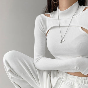 Featuring intricate shoulder cut-outs, the versatile shirt effortlessly adds a touch of elegance to any ensemble.