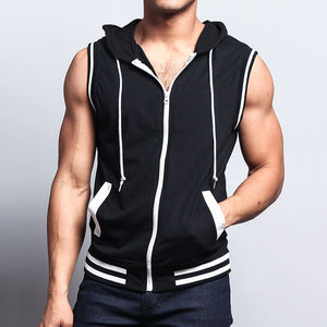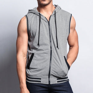The Simon Sporty Sleeveless Hoodie combines comfort and style, making it a must-have addition to any active man's wardrobe.