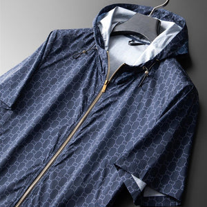 The two pieces showcase an intricate play of angles and lines, creating a captivating geometric pattern. The versatile integration of the hood effortlessly bridges the gap between casual wear and refined elegance.