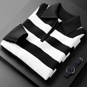 The modern essential has been woven in a striped pique knit, lending a contemporary edge to the classic polo silhouette.